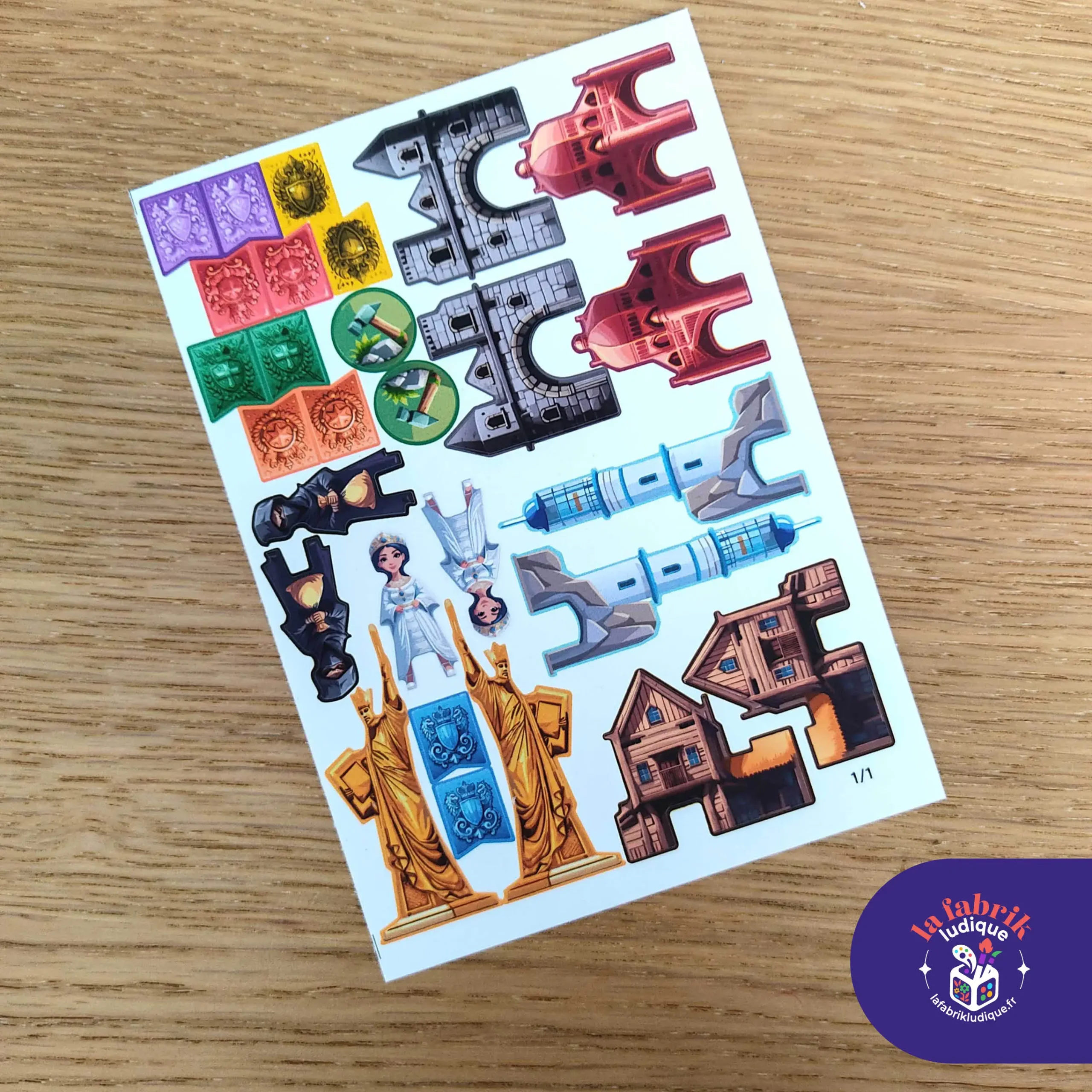 Chaque autocollant a été pensé pour sublimer le matériel tout en respectant l’univers médiéval et stratégique du jeu. Une touche visuelle élégante qui améliore la lisibilité sur la table et renforce l’immersion… pour bâtir votre royaume avec style !