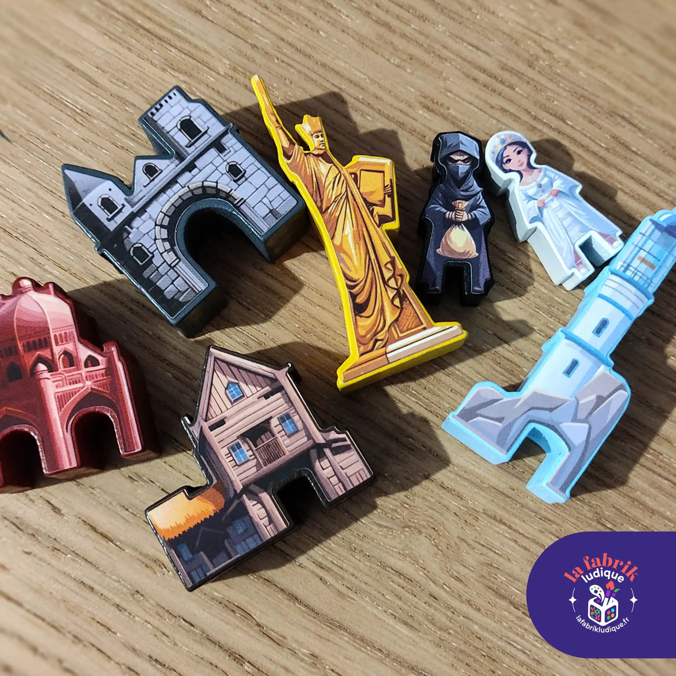 Les illustrations sont en partie réalisées à l’aide de l’IA générative, puis ajustées et retravaillées par «La Fabrik Ludique» afin d’obtenir un meilleur rendu sur les meeples.
