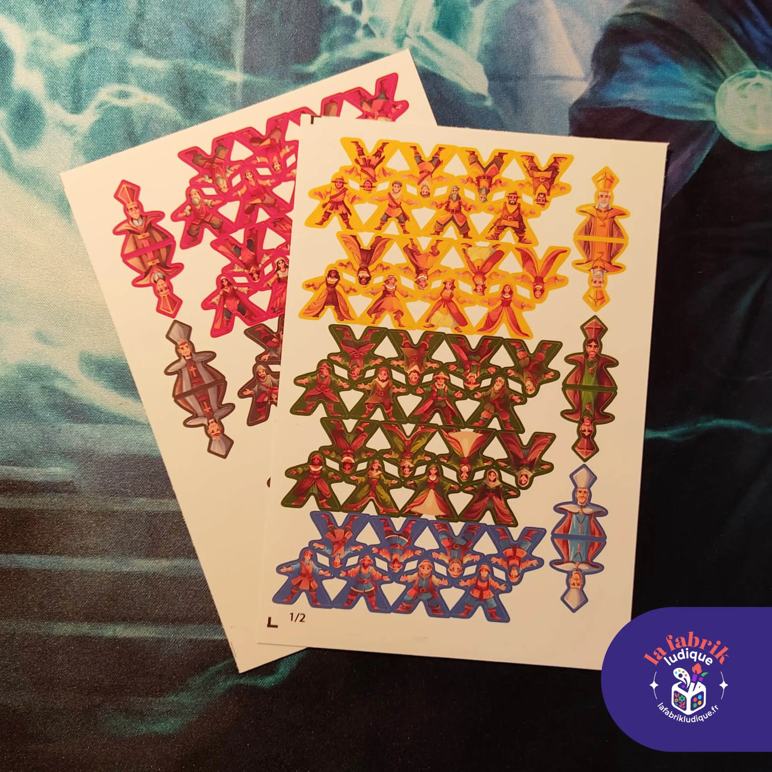 Stickers recto/verso pour vos meeples et abbés