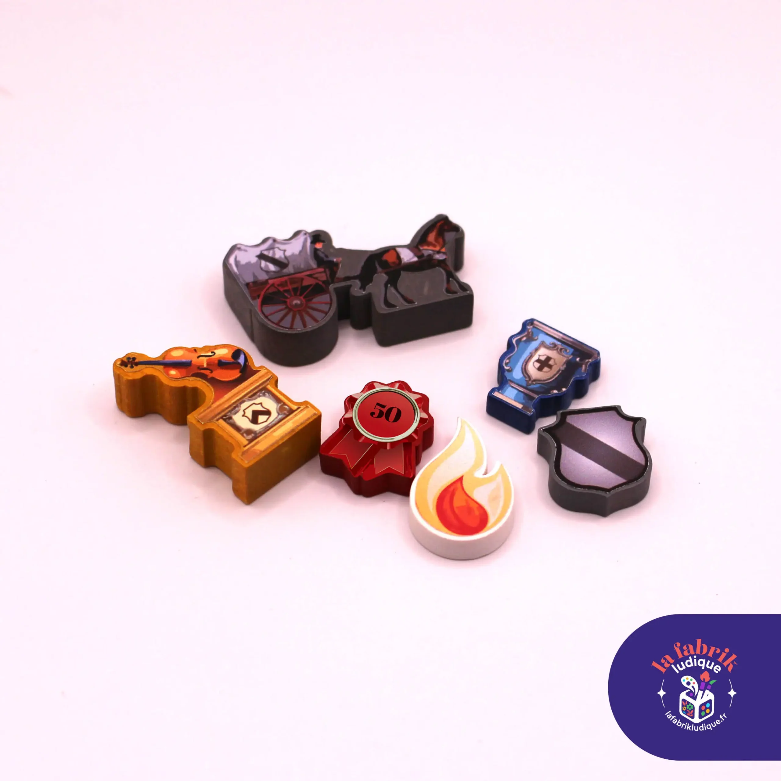 Les illustrations sont en partie réalisées à l’aide de l’IA générative, puis ajustées et retravaillées par «La Fabrik Ludique» afin d’obtenir un meilleur rendu sur les meeples.