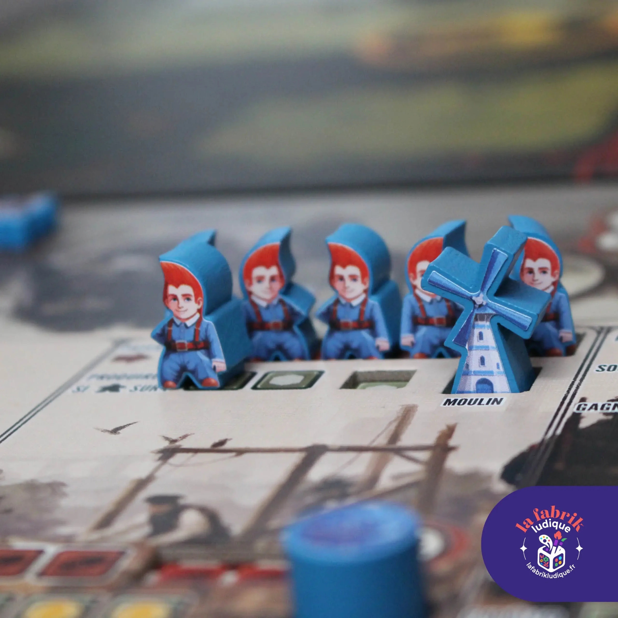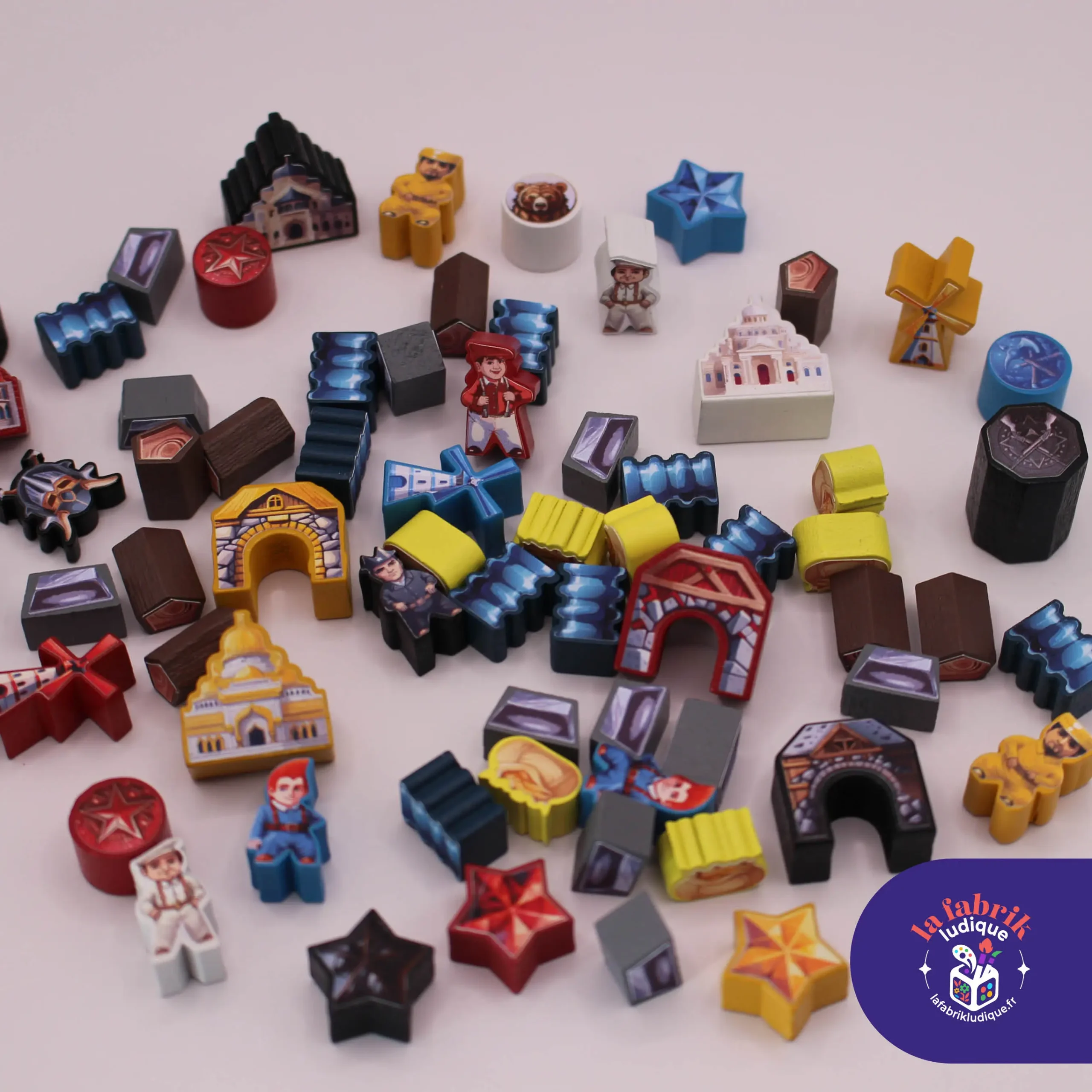Les illustrations sont en partie réalisées à l’aide de l’IA générative, puis ajustées et retravaillées par «La Fabrik Ludique» afin d’obtenir un meilleur rendu sur les meeples.